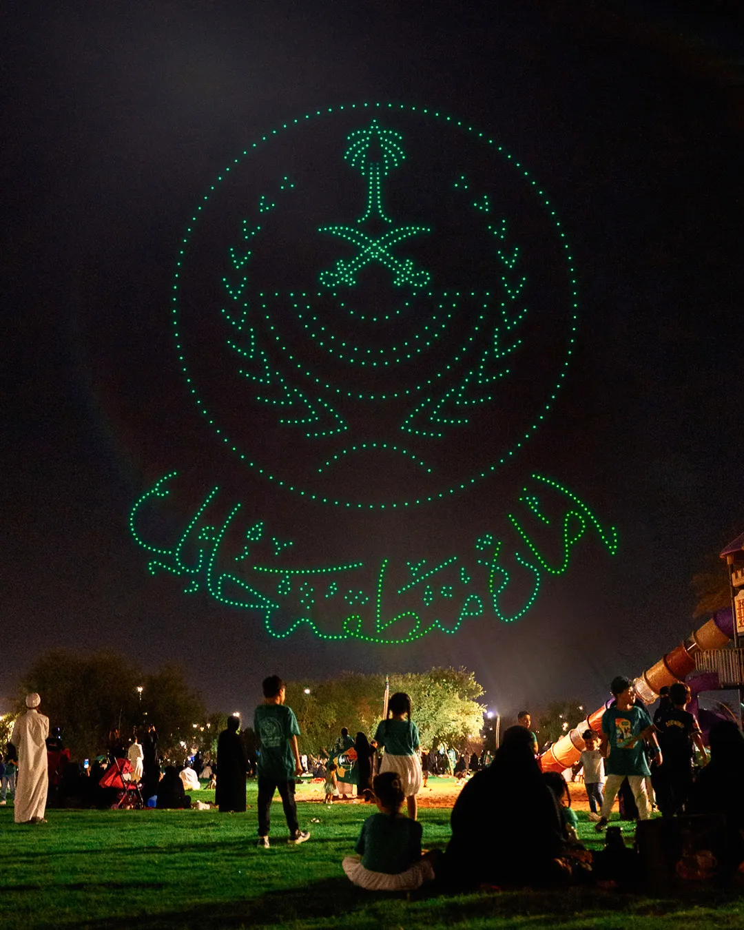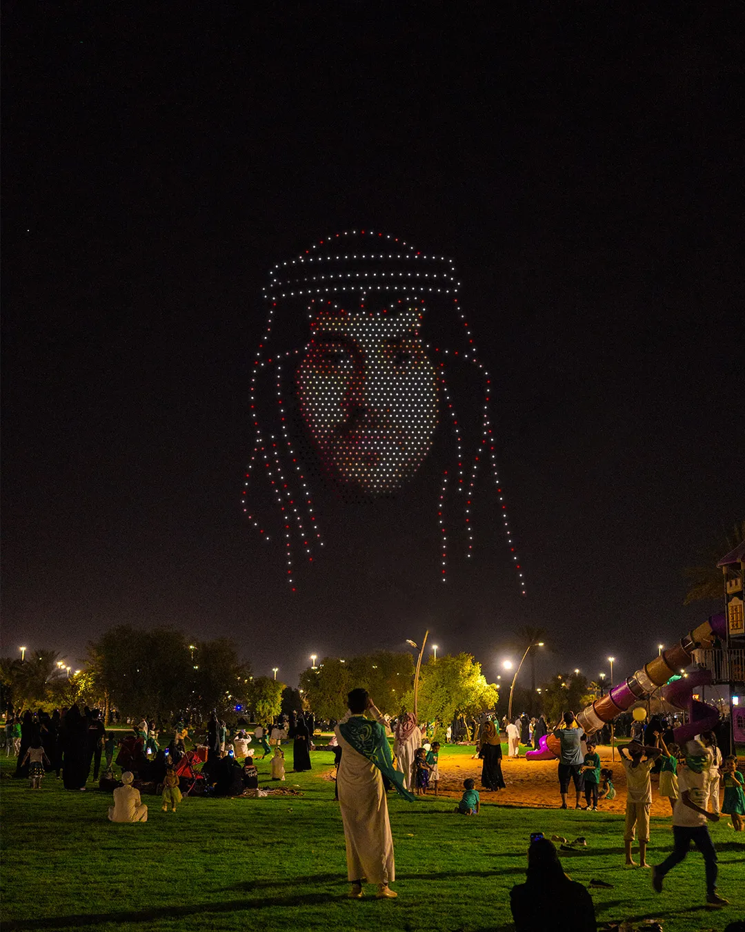 Zum 93. Nationalfeiertag versammelten sich die Menschen in Saudi-Arabien unter dem Motto „We Dream and Achieve“ und feierten die reiche Geschichte und glänzende Zukunft der Nation. Inmitten der Feierlichkeiten freute sich Cyberdrone, zu den Feierlichkeiten beizutragen und Ha'il seine allererste Drohnen-Lichtshow zu präsentieren. Dabei handelte es sich nicht um irgendeine Ausstellung, sondern um eine spektakuläre Präsentation riesiger Porträts der königlichen Familie, die aufwendig aus Drohnen gefertigt waren. Zwei Nächte hintereinander.