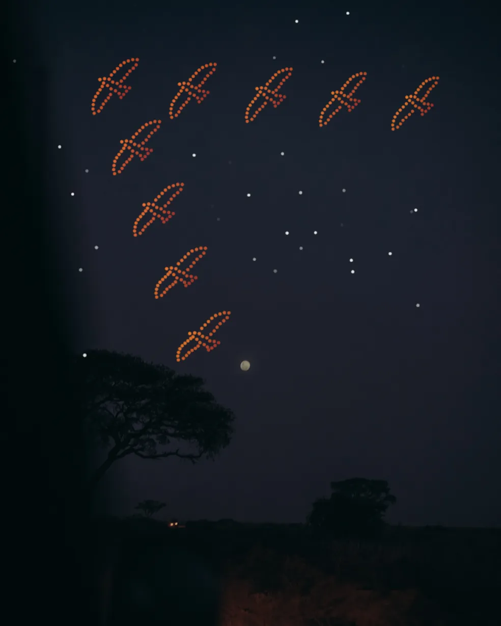 Here, where sound carries far and nature is sacred, our drones perform in silence. No explosions. No debris. No harm to wildlife. Just a soft hum and a sky full of meaning.