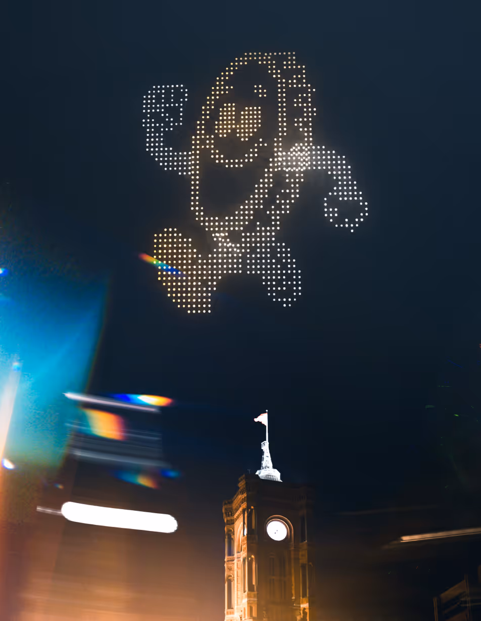 From summer nights in Berlin to riverside events in Hamburg, automotive launches near Stuttgart, financial milestones in Frankfurt, or city festivals along the Rhine—drone light shows create structured aerial narratives. Every formation is timed to the second, designed for maximum legibility, and optimized to look as strong on broadcast and social media as it does from the ground.
