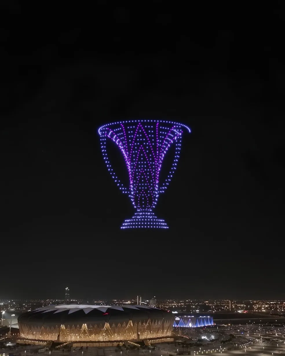 With a fleet of up to 7,000 drones, including pyro drones, we can scale from elegant minimalism to fully cinematic sequences. Fine-line calligraphy, geometric motifs, crescents and palms, and layered 3D scenes can all be designed to match the tone of the occasion, with motion built around the evening’s cadence rather than overpowering it. Up to 18 minutes of flight time at speeds up to 8 m/s gives room for a real narrative arc, not just isolated “wow” moments.